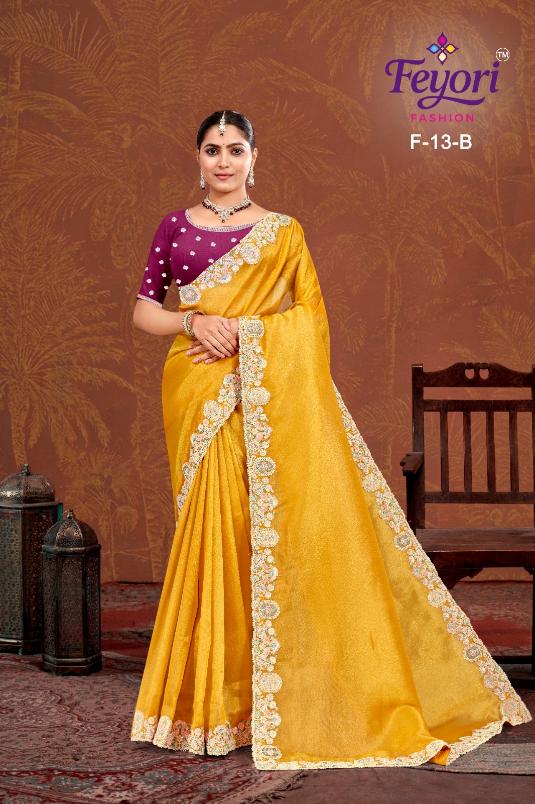 Fit Tips: Ensure a proper tacking and pleating will enhance the saree's flow and prevent any slipping.