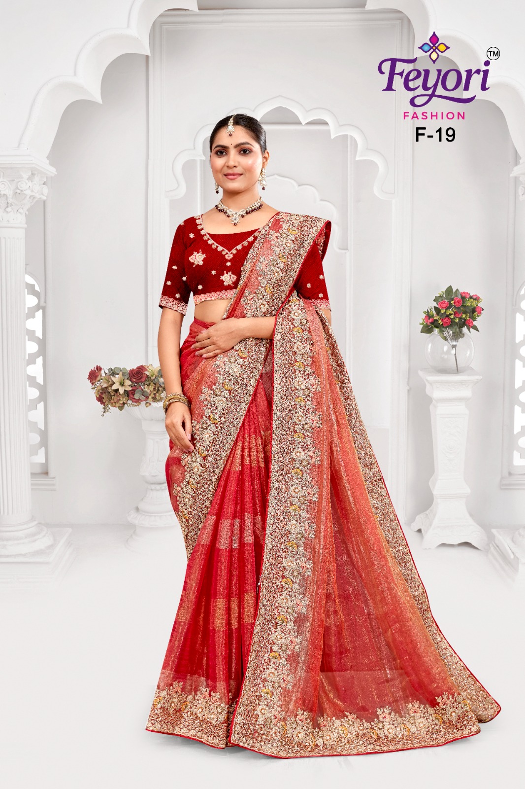 Fit Tips: Ensure a proper tacking and pleating will enhance the saree's flow and prevent any slipping.