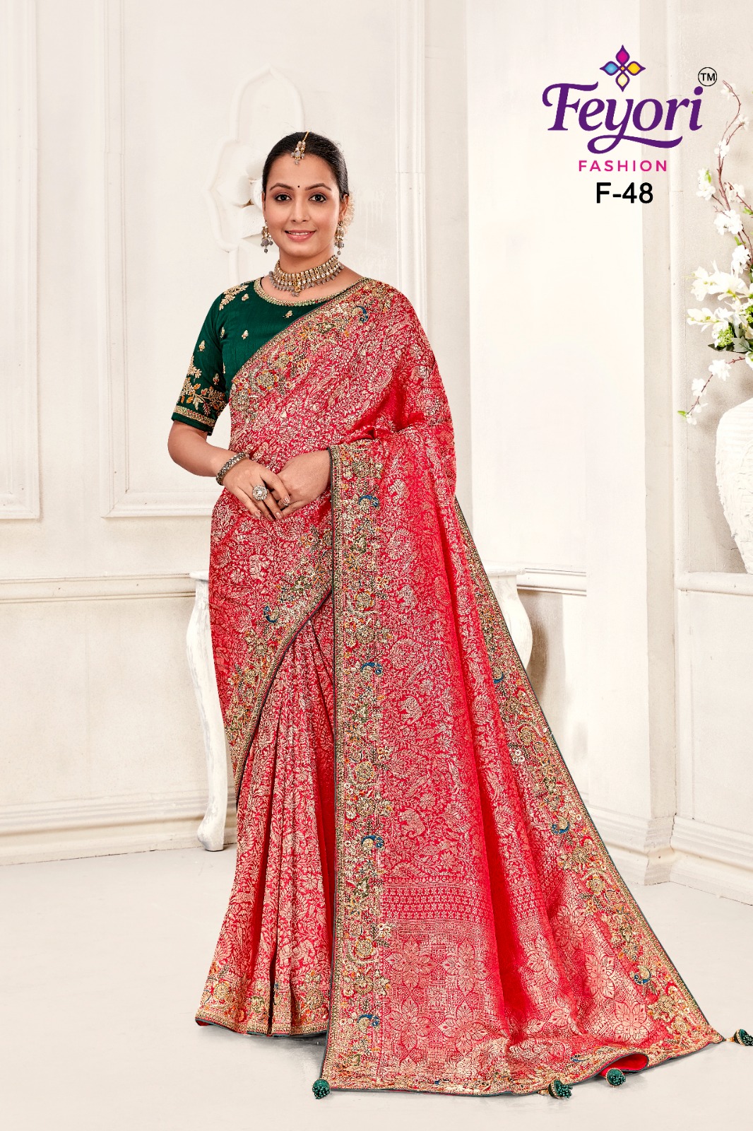 Fit Tips: Ensure a proper tacking and pleating will enhance the saree's flow and prevent any slipping.