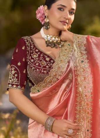 Fit Tips: Ensure a proper tacking and pleating will enhance the saree's flow and prevent any slipping.