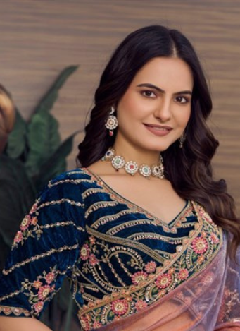 Fit Tips: Ensure a proper tacking and pleating will enhance the saree's flow and prevent any slipping.